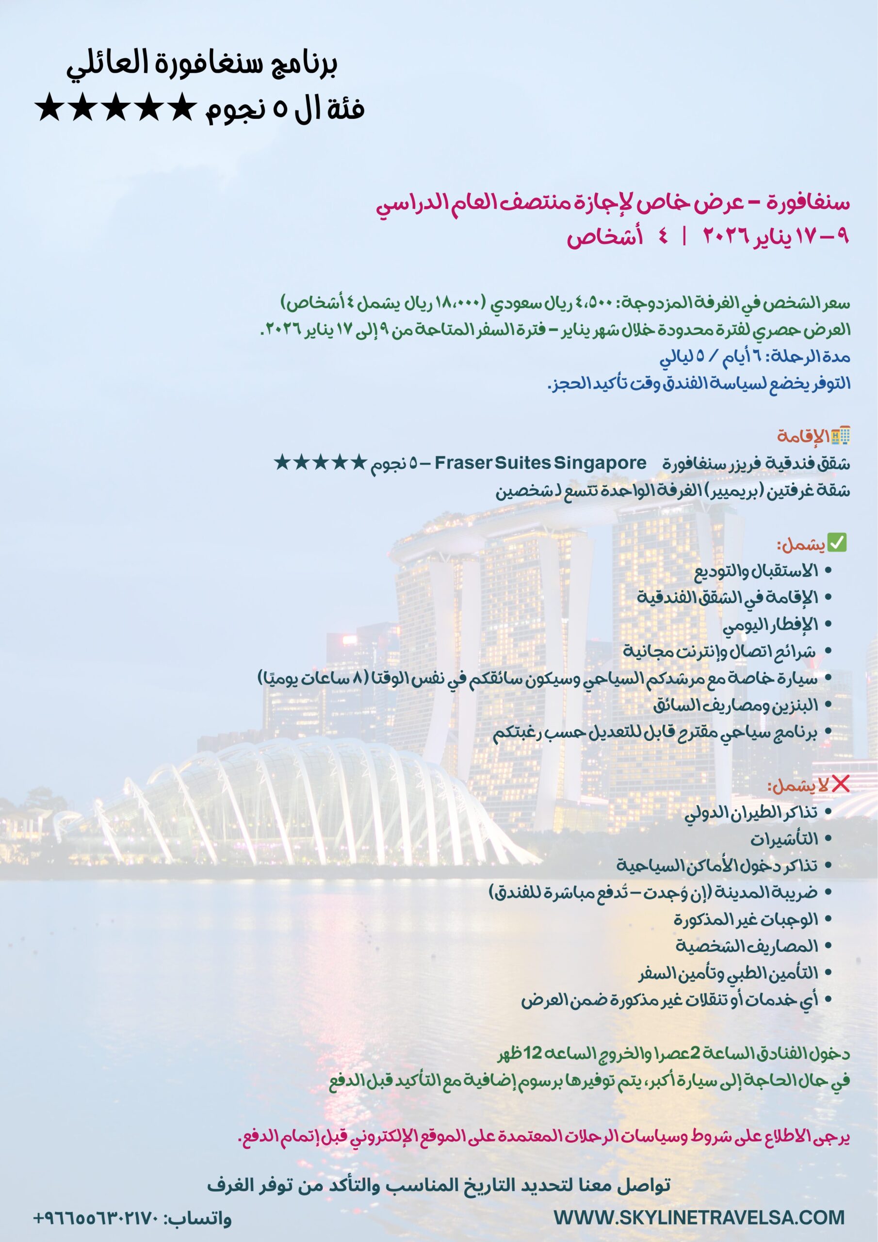 العرض حصري لفترة محدودة خلال شهر يناير – فترة السفر المتاحة من ٩ إلى ١٧ يناير٢٠٢٦.