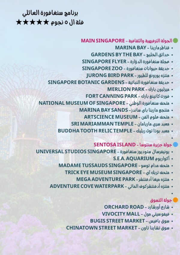 🟢 الجولة الترفيهية والثقافية – Main Singapore