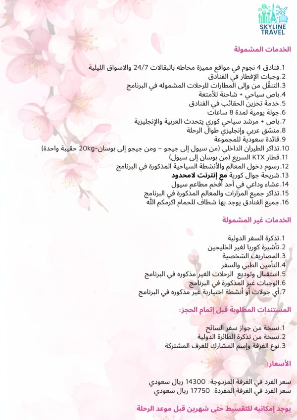 إضغط هنا للاطلاع على تفاصيل الرحلة 2026 كوريا الجنوبية رحلة ابريل